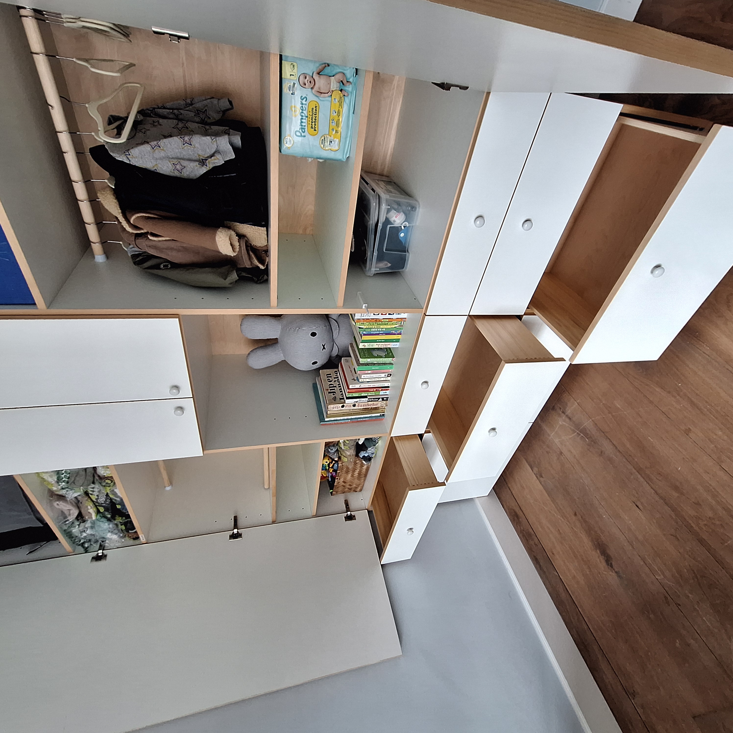Pantoni populieren plex wit nevelwit hpl en Vuren kantenband en porcelein meubelknopen